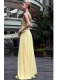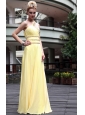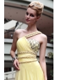 Yellow Empire One Shoulder Floor-length Beading Chiffon Prom / Party Dress
