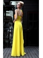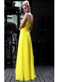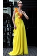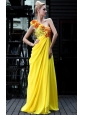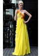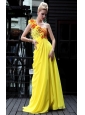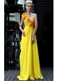 Yellow Empire One Shoulder Floor-length Chiffon Appliques Prom Dress