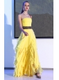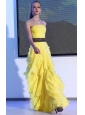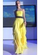 Yellow Empire Strapless Floor-length Chiffon Belt and Ruch Prom Dress