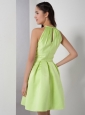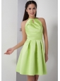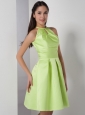 Home >  Bridesmaid Dresses >  Simple Bridesmaid Dresses > Yellow Green A-line High-neck Bridesmaid Dress Elastic Woven Satin Ruch Knee-length