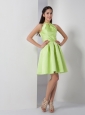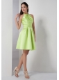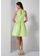Yellow Green A-line High-neck Bridesmaid Dress Elastic Woven Satin Ruch Knee-length