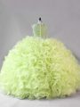 Home >  Quinceanera Dresses >  Discount Quinceanera Dresses > Yellow Green Ball Gowns Beading and Ruffles 15th Birthday Dress Zipper Fabric With Rolling Flowers Sleeveless Floor Length