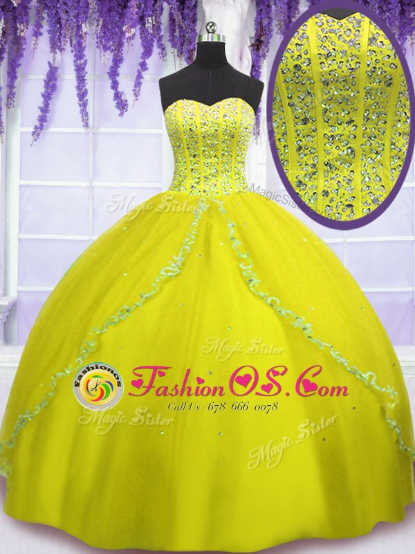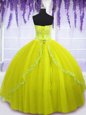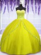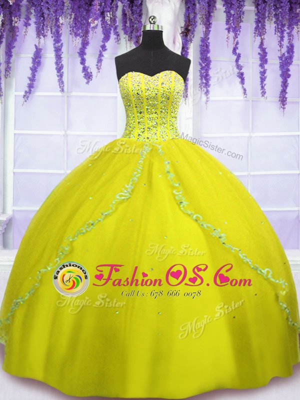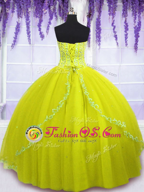 Yellow Green Ball Gowns Beading Sweet 16 Dress Lace Up Tulle Sleeveless Floor Length