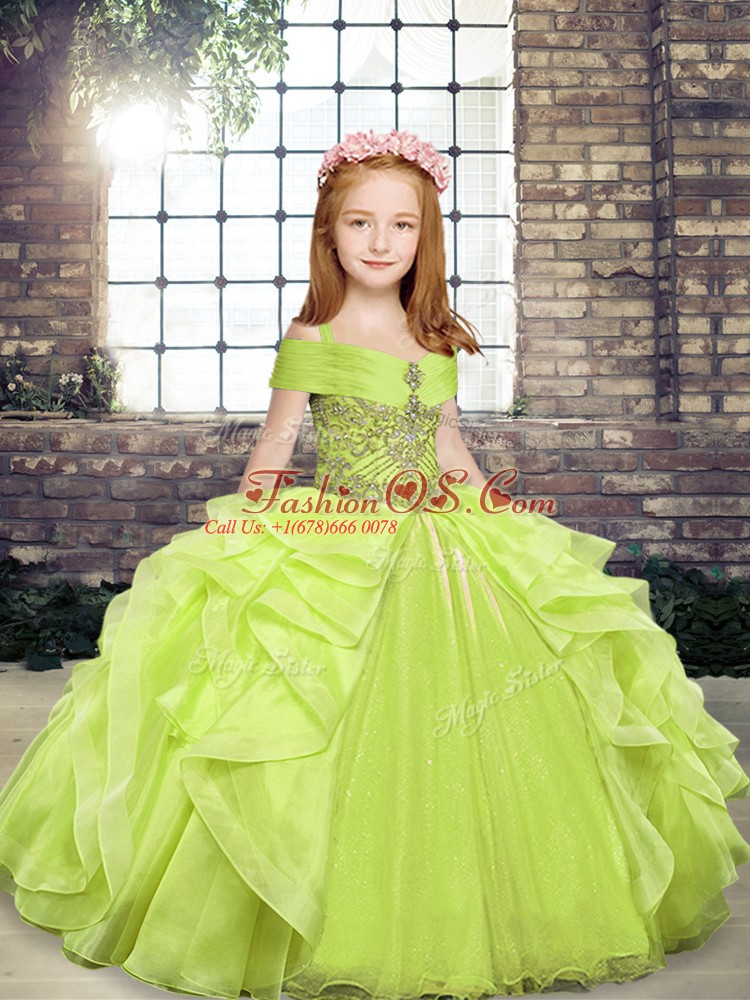 Home >  Special Occasion Dresses >  Beautiful Kids Pageant Dresses > Yellow Green Ball Gowns Organza Straps Sleeveless Beading and Ruffles Floor Length Lace Up Pageant Dress Wholesale
