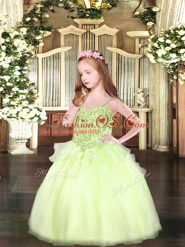 Home >  Special Occasion Dresses >  Pretty Little Girl Pageant Dresses > Yellow Green Ball Gowns Spaghetti Straps Sleeveless Organza Floor Length Lace Up Appliques Child Pageant Dress