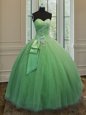 Home >  Quinceanera Dresses >  Unique Quinceanera Dresses > Yellow Green Ball Gowns Sweetheart Sleeveless Tulle Floor Length Lace Up Beading and Ruching and Bowknot Quinceanera Dress