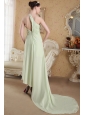 Home >  Prom Dresses >  Cheap Prom Dresses > Yellow Green Empire One Shoulder Brush Train Chiffon Ruch Prom Dress