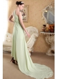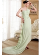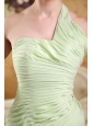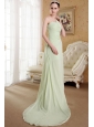 Yellow Green Empire One Shoulder Brush Train Chiffon Ruch Prom Dress