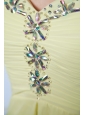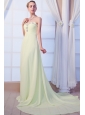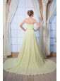 Yellow Green Empire Sweetheart Beading Prom Dress Brush Train Chiffon