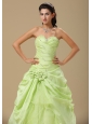 Yellow Green Hand Made Flowers and Ruched Bodice Quinceanera dresses
