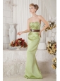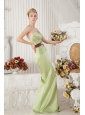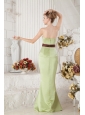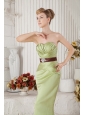 Yellow Green Junior Prom Dress Beading and Sash Column Sweetheart Floor-length Satin