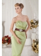 Home >  Prom Dresses >  Junior Prom Dresses > Yellow Green Junior Prom Dress Beading and Sash Column Sweetheart Floor-length Satin