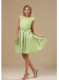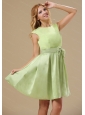 Home >  Special Occasion Dresses >  Dama Dresses for Quinceanera > Yellow Green Knee-length Sash Scoop Dama Dress For Summer