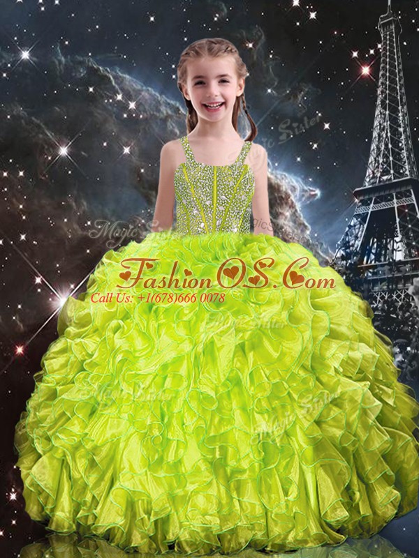 Yellow Green Lace Up Straps Beading and Ruffles Pageant Dress for Teens Organza Sleeveless