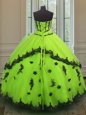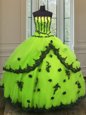 Yellow Green Lace Up Sweet 16 Quinceanera Dress Appliques Sleeveless Floor Length