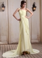 Yellow Green Prom Dress With One Shoulder Court Train Chiffon