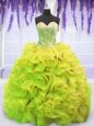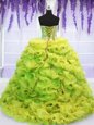 Yellow Green Quince Ball Gowns Organza Sweep Train Sleeveless Beading and Ruffles