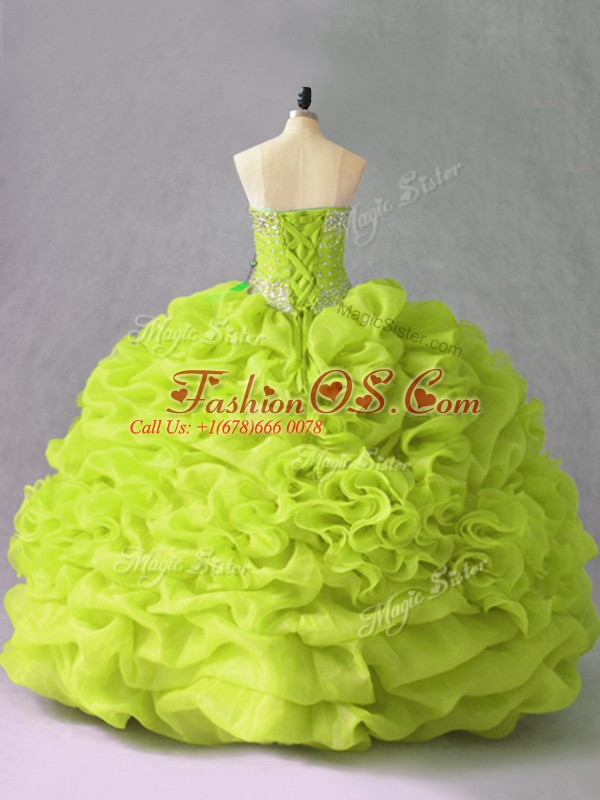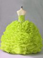 Yellow Green Sleeveless Beading and Pick Ups and Hand Made Flower Floor Length Quinceanera Gowns