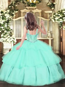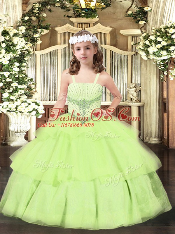Home >  Special Occasion Dresses >  Lovely Little Girl Pageant Dresses > Yellow Green Sleeveless Floor Length Beading and Ruffled Layers Lace Up Little Girls Pageant Dress