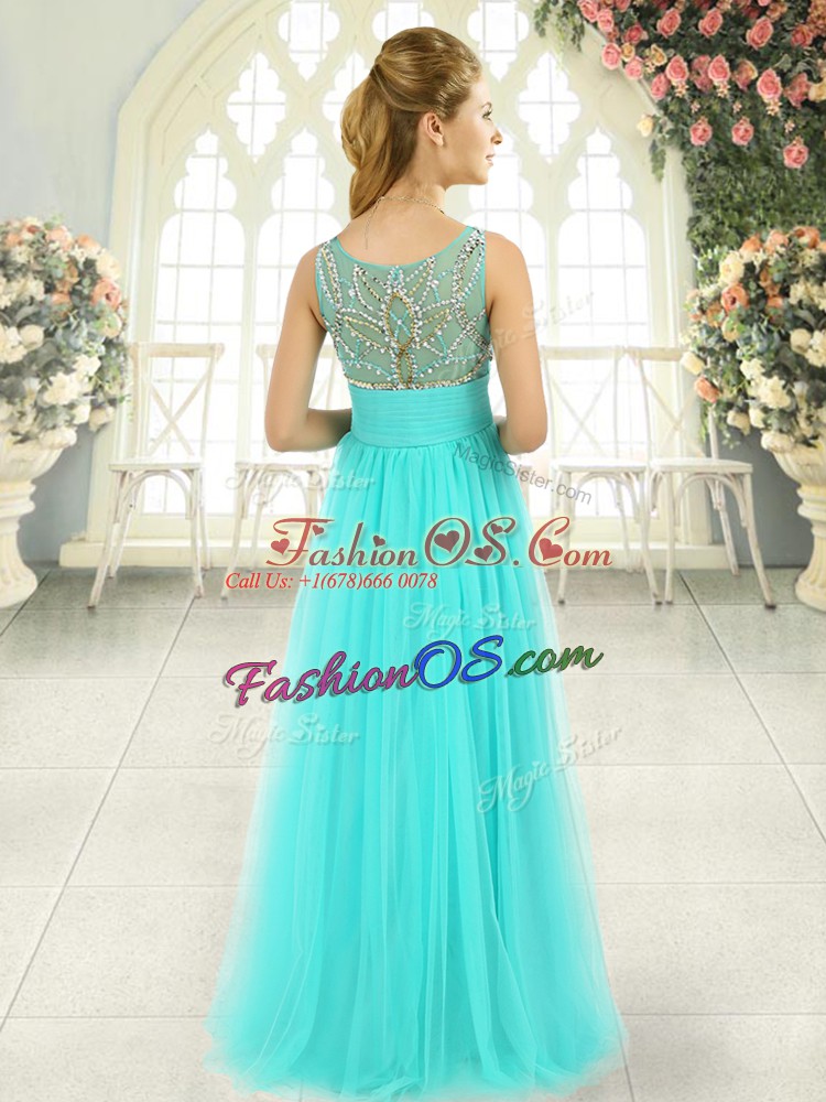 Yellow Green Sleeveless Floor Length Beading Side Zipper Prom Dress