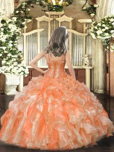 Yellow Green Straps Neckline Beading and Ruffles Little Girls Pageant Dress Sleeveless Lace Up