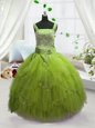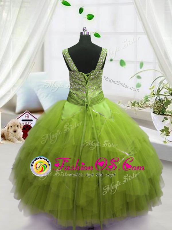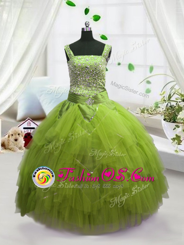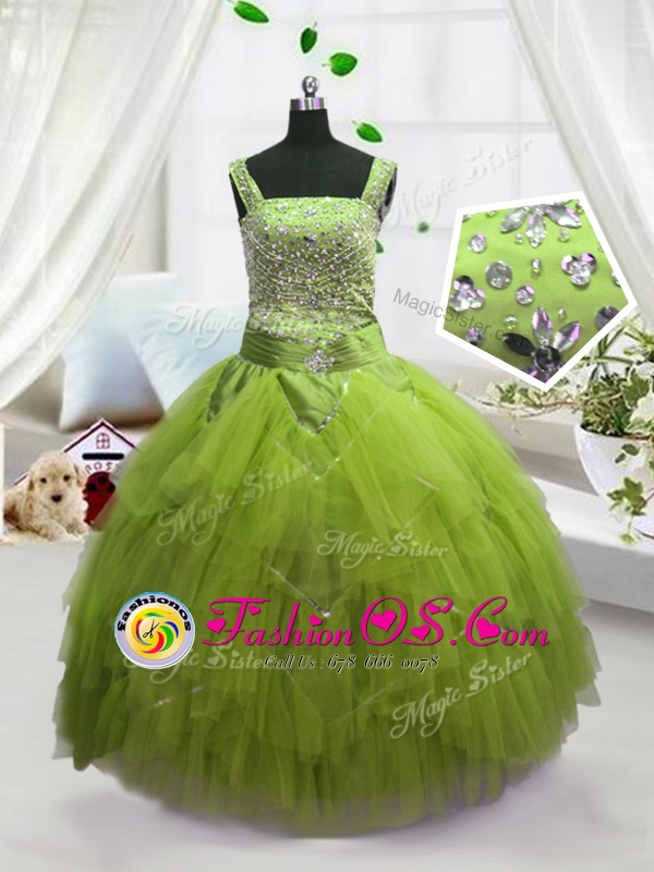 Yellow Green Straps Neckline Beading and Ruffles Little Girls Pageant Dress Wholesale Sleeveless Lace Up