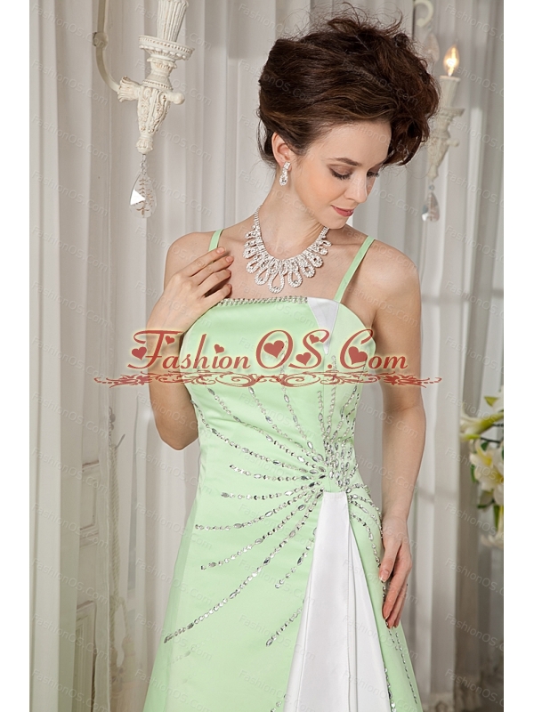 Yellow Green Straps Satin Beading 2013 Dama Dresses
