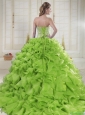Yellow Green Sweetheart Brush Train Quinceanera Dresses