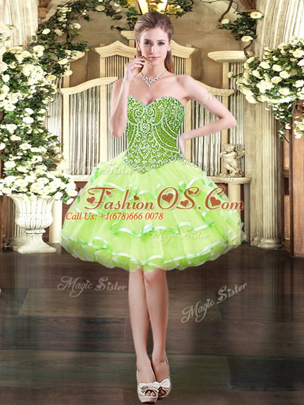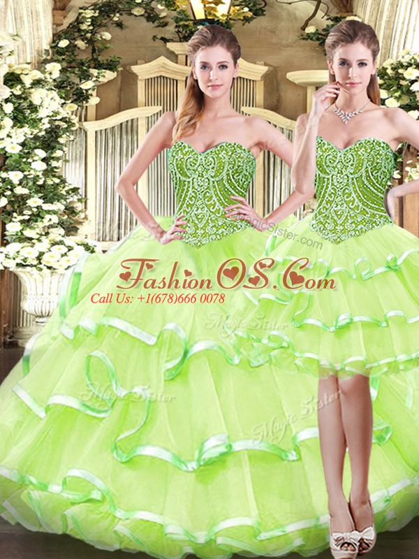 Yellow Green Three Pieces Organza Sweetheart Sleeveless Ruffled Layers Floor Length Lace Up Quinceanera Gown