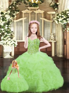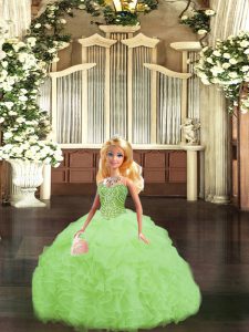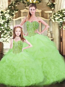 Yellow Green Tulle Lace Up Quince Ball Gowns Sleeveless Floor Length Ruffles