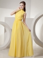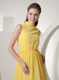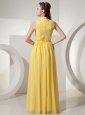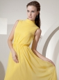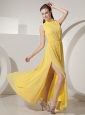 Yellow High-neck Empire Prom Dress Floor-length Chiffon