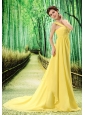 Yellow One Shoulder Prom Dress Appliques and Ruch
