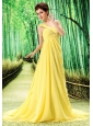 Home >  Prom Dresses >  Elegant Prom Dresses > Yellow One Shoulder Prom Dress Appliques and Ruch