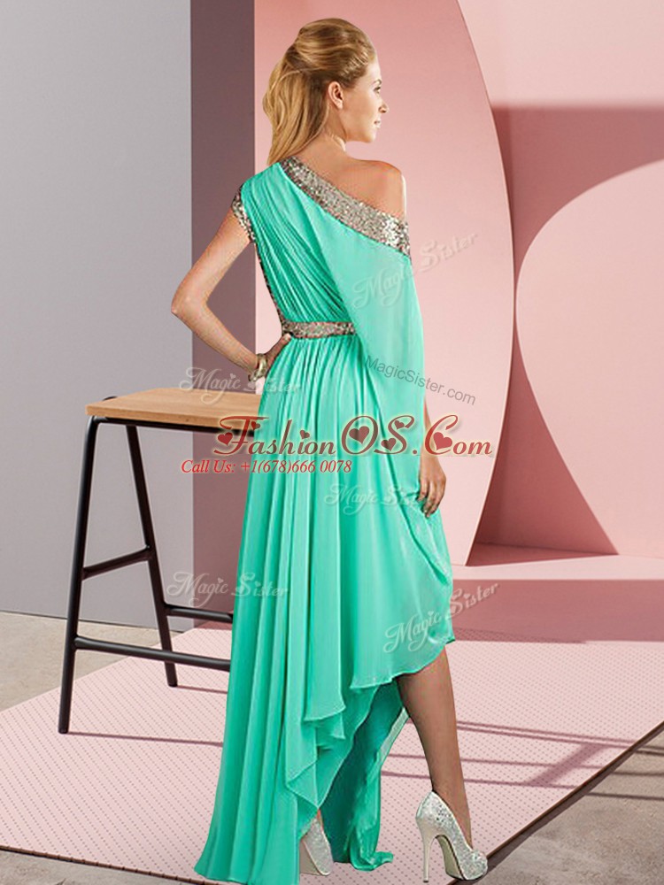 Yellow One Shoulder Side Zipper Sequins Party Dress Wholesale Sleeveless