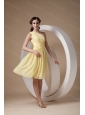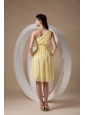 Yellow Short One Shoulder Chiffon Ruch Dama Dresses On Sale