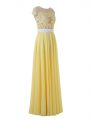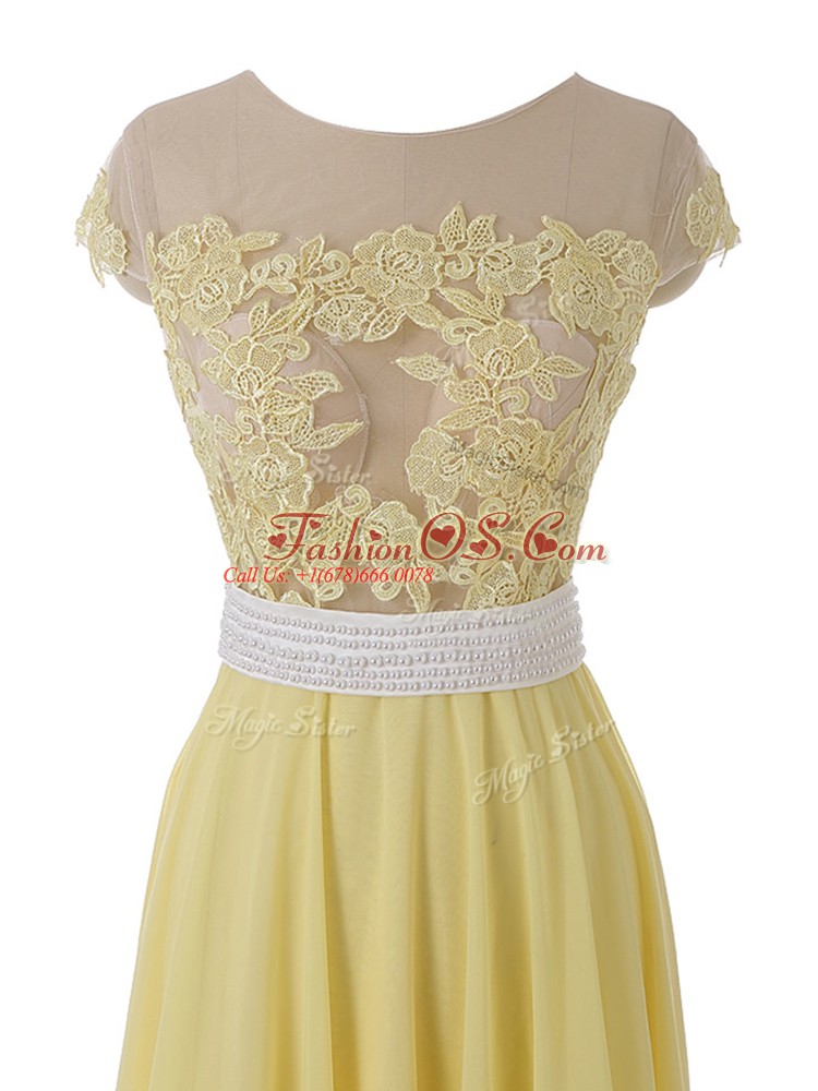 Yellow Side Zipper Scoop Lace and Appliques Homecoming Dress Organza Sleeveless