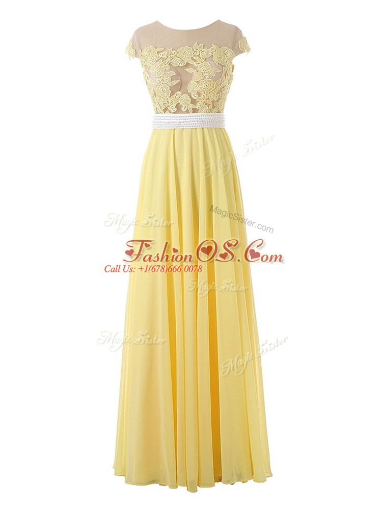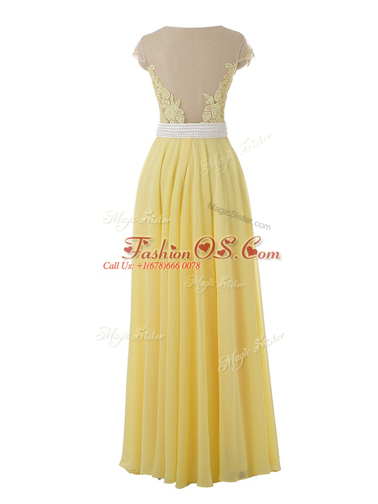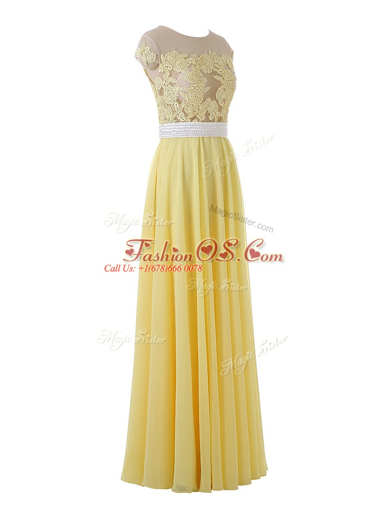 Home >  Prom Dresses >  Prom Dresses 2018 > Yellow Side Zipper Scoop Lace and Appliques Homecoming Dress Organza Sleeveless
