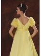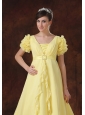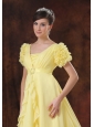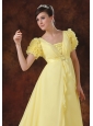 Yellow Square Short Sleeves Flowers Decorate Prom Dress