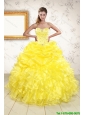 Yellow Sweetheart Rufflers Beading Quinceanera Dress and Bownot Short Prom Dresses and Yellow Spaghetti Straps Beading Pageant Dresses for Little Girl