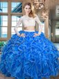 Zipper Sweet 16 Dresses Fuchsia and In for Military Ball and Sweet 16 and Quinceanera with Lace and Ruffles and Pick Ups Brush Train