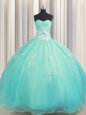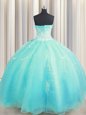 Zipper Up Aqua Blue Quince Ball Gowns Military Ball and Sweet 16 and For with Beading and Appliques Sweetheart Sleeveless Zipper