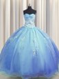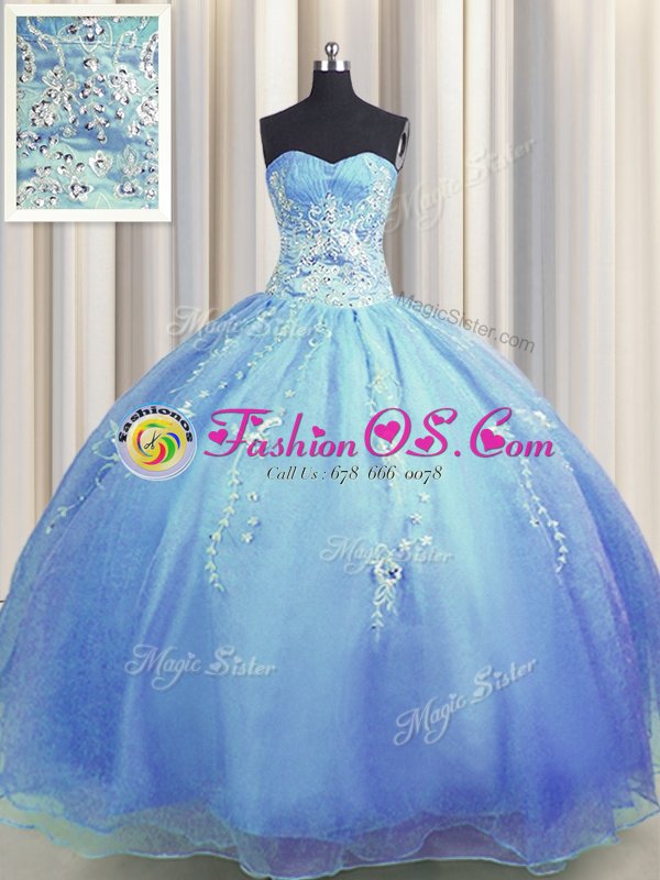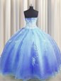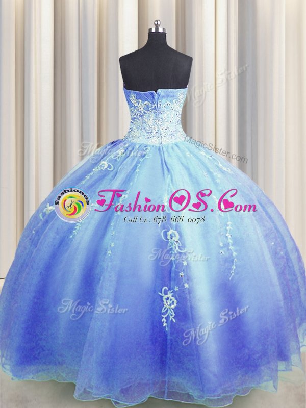 Zipper Up Floor Length Zipper Sweet 16 Quinceanera Dress Blue and In for Military Ball and Sweet 16 and Quinceanera with Beading and Appliques