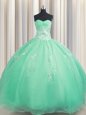 Home >  Quinceanera Dresses >  Sweet 16 Dresses > Zipper Up Sleeveless Floor Length Beading and Appliques Zipper Quinceanera Dress with Apple Green