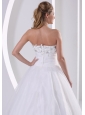 The bodice accented by the floral embellishments and the boning details flatters most figures. It truly is an example of high end couture fashion. The floor-length skirt is a long and layers that begins at the hips and envelopes the legs in luxurious tulle all the way to the floor in a pretty A-line shape. The hidden zipper in the back of the dress secures it in place and makes for easy off and on. You are sure to be charming and fabulous at your very special day.