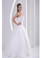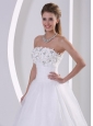 Zipper-up Organza A-line Beach Wedding Dress With Appliques and Beading