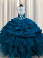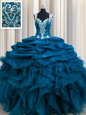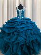 Zipple Up See Through Back Sleeveless Beading and Ruffles and Sequins and Pick Ups Zipper Quinceanera Dresses